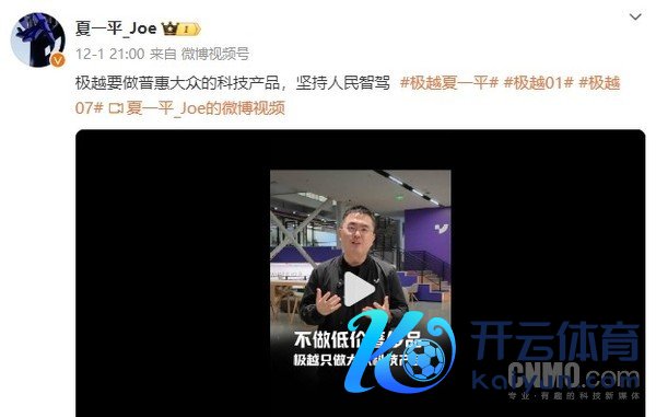 极越CEO:华为的告捷让我罕见深信 屡创国家具牌新高度九游官网登录入口jiuyou官网 【CNMO科技音书】近日,极越汽车CEO夏一平在谈到国家具牌发展的话题时示意,华为的告捷让他罕见深信。他还合计,华为一直在把国家具牌拉到新高度。 CNMO谛视到,夏一平近日发布视频示意,华为Mate 70系列发布,之前三折叠屏手机问世,涨价能力够买到,广州车展上尊界S800亮相,只消被邀请的媒体能力看到。对此,他合计,华为每次齐会把国家具牌拉到了一个新的高度。 夏一平在视频中说谈:“哀痛往常这样多年,国家具