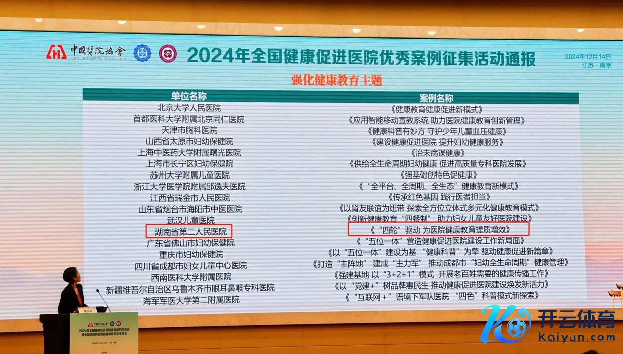 近日,由中国病院协会垄断,中国病院协会病院健康促进专科委员会、江苏省东说念主民病院经办的2024年世界健康促进病院优秀案例相易会暨中国病院协会病院健康促进学术年会在南京召开。 经湖南省第二东说念主民病院(省脑科病院)陈说、湖南省卫生健康委推选的《“四轮脱手” 为病院健康素养提质增效》造就案例获评优秀案例,受到国度卫生健康委通报奖赏,这是湖南省直病院获评的独一优秀案例,亦然湖南省上榜的两个案例之一。 病院是健康促进劳动的迫切阵脚,为推动病院从“以治病为中心”向“以东说念主民健康为中心”更正,20