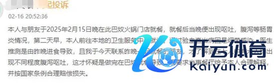 有消耗者投诉称,我方与一又友于2025年2月15日晚在巴奴毛肚暖锅就餐后,出现吐逆、泻肚等肠胃炎症状,经会诊为细菌感染,遂要求餐厅予以合领会释并照章补偿亏蚀。